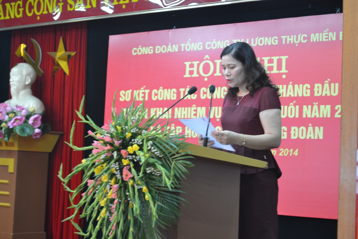 Ngày 06-07/8/2014 Công đoàn Tổng công ty Lương thực miền Bắc đã tổ chức Hội nghị sơ kết công tác Công đoàn 6 tháng đầu năm, triển khai nhiệm vụ công tác 6 tháng cuối năm 2014, tôn vinh "Thỏa ước lao động tập thể chất lượng cao", "Lao động giỏi, lao động sáng tạo" năm 2014 và tập huấn nghiệp vụ Công đoàn năm 2014. Tham dự hội nghị có các đồng chí Ủy viên BCH Công đoàn Tổng công ty, Chủ tịch Công đoàn cơ sở trực thuộc, Công đoàn bộ phận trực thuộc Văn phòng Tổng công ty và các cá nhân điển hình phong trào "Lao động giỏi, lao động sáng tạo" năm 2014