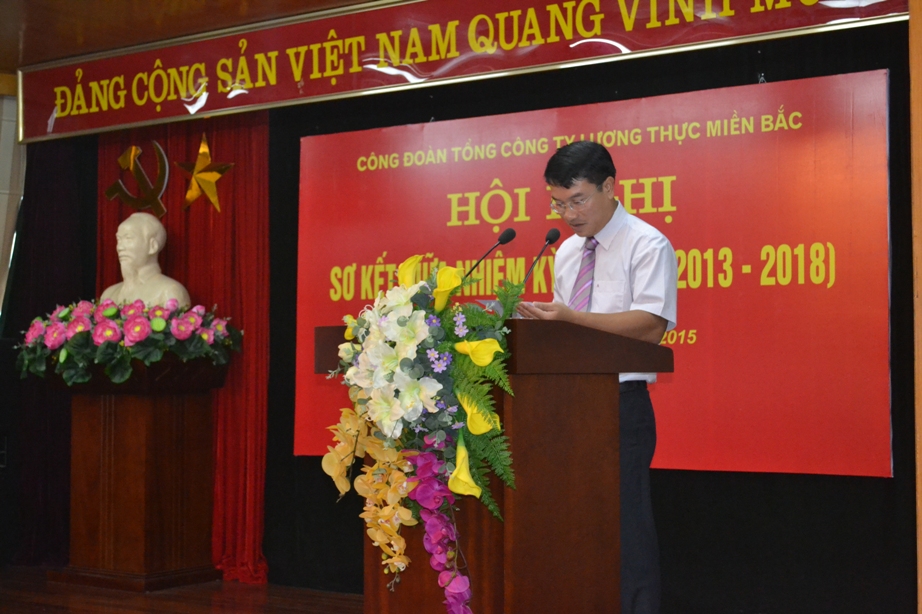 Ngày 02/10/2015 tại Hà Nội, Công đoàn Tổng công ty Lương thực Miền Bắc đã tổ chức Hội nghị sơ kết giữa nhiệm kỳ thực hiện Nghị quyết Đại hội Công đoàn Tổng công ty, nhiệm kỳ 2013-2018. Đến dự và chỉ đạo hội nghị có đồng chí Vũ Xuân Thủy, Ủy viên Ban Cán sự Đảng Bộ Nông nghiệp và PTNT, Ủy viên Đoàn Chủ tịch Tổng Liên đoàn Lao động Việt Nam, Chủ tịch Công đoàn Ngành; đồng chí Bùi Thị Thanh Tâm, Ủy viên BCH Đảng bộ Khối Doanh nghiệp Trung ương, Bí thư Đảng ủy, Tổng giám đốc Tổng công ty; đồng chí Phan Xuân Quế , Phó Bí Thư Đảng ủy, Chủ tịch HĐTV Tổng công ty; các đồng chí lãnh đạo trong Ban Thường vụ Đảng ủy, Hội đồng thành viên, Ban Tổng giám đốc, Kiểm soát viên và các Trưởng ban chuyên môn Tổng công ty Lương thực Miền Bắc. Tham dự hội nghị có các đồng chí Ủy viên BCH Công đoàn Tổng công ty, Chủ tịch Công đoàn cơ sở trực thuộc.