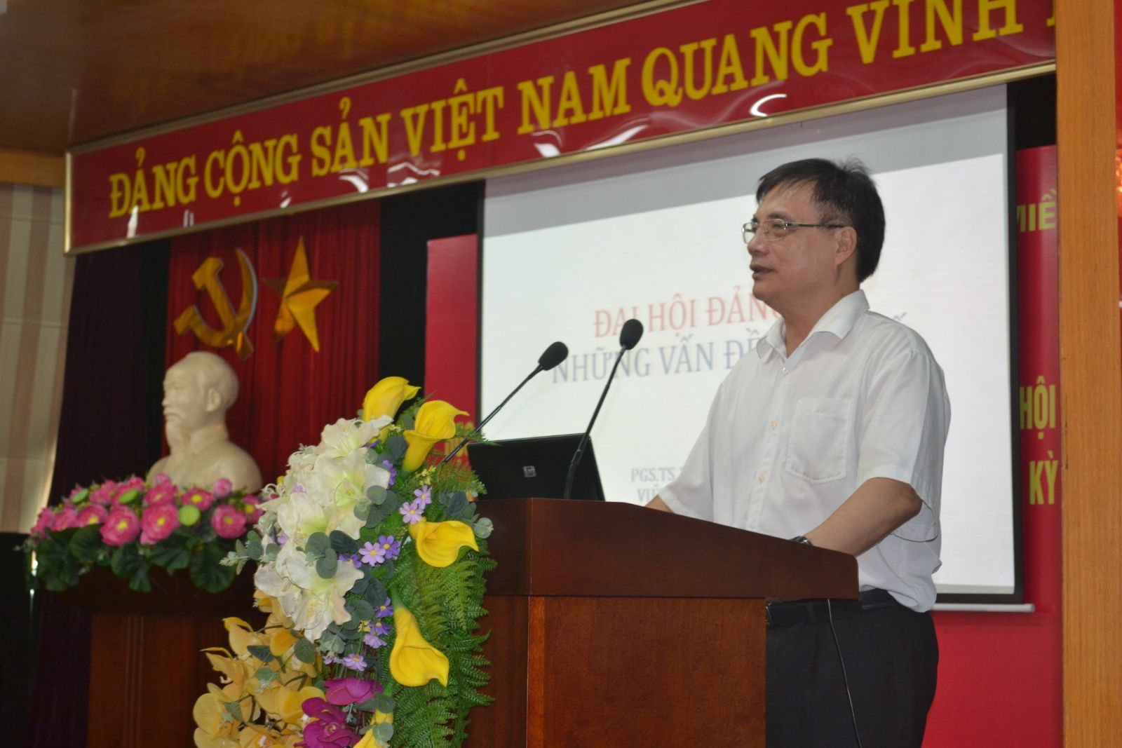PGS,TS: Trần Đình Thiên, Viện trưởng Viện Kinh tế Việt Nam, truyền đạt nội dung Nghị quyết Đại hội XII của Đảng.